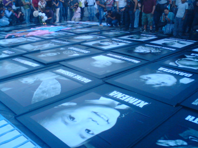 Posteriormente, al llegar a la explanada del Zócalo, justo debajo del asta bandera, se colocaron las fotografías de las víctimas del incendio y se guardó un minuto de silencio.