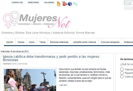 Este 2016 es un año especial para quienes colaboramos con MujeresNet. 10 años se dicen fácil, se pasan rápido pero perdurar en un espacio y lograr escribir desde la convicción y el corazón sobre un tema que hoy es moda en el ámbito público-político, las mujeres y su quehacer, es una hazaña, aunque muchos no lo crean. Así que abracémonos y congratulémonos de coincidir todas y cada una de las feministas periodistas que nos damos cita para escribir, para leer y para festejar: Elsa Lever, por supuesto, guía e inspiración de este proyecto; Guadalupe López, Elvira Hernández Carballido, María Esther Espinosa y Lucía Rivadeneyra, compañeras entusiastas y ex colaboradoras de la desaparecida revista Fem, que mantienen vivo el espíritu del periodismo feminista que soñaron y realizaron nuestras admiradas ancestras.