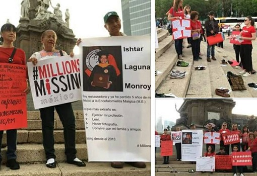 El primer día #MillionsMissing tuvo lugar en el 2016. Desde entonces se han organizado protestas y mítines en todo el mundo. Las protestas están orientadas a exigir a los gobiernos fondos de investigación adecuados, educación médica y la visibilización social global del colectivo.