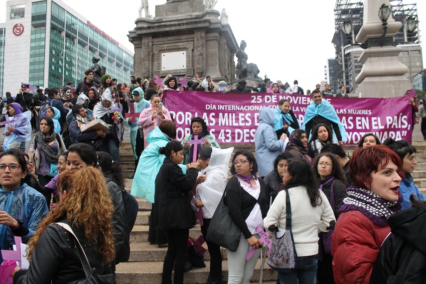 México, D.F. /MujeresNet.- Más de 10 colectivos feministas se reunieron el 20 de noviembre de 2014 en el Ángel de la Independencia para marchar en apoyo a los familiares de los 43 estudiantes de Ayotzinapa desaparecidos el pasado 26 de septiembre en Iguala, Guerrero.
