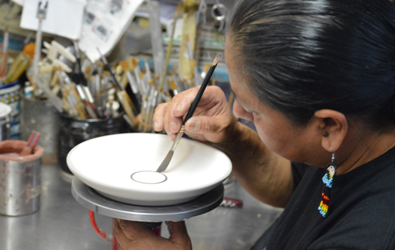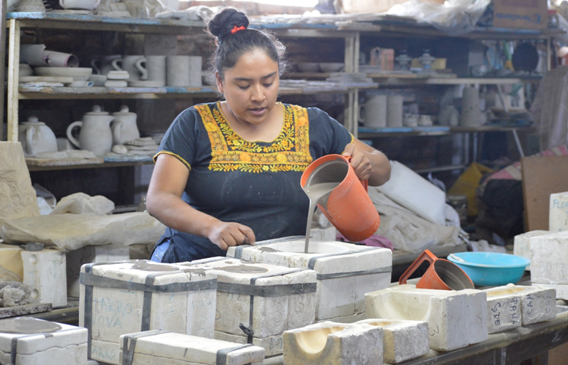 El trabajo que realizan es de contrastes. Por un lado se necesita fuerza y resistencia para cargar bultos y moldes. Por otro, el diseño de las piezas es necesariamente delicado. "Yo les digo a todas las que llegan, 'aquí no puedes decirme que no puedes hacerlo, eso te lo quitas de la mente, porque sí puedes. Todo lo que se pueda hacer con dos manos lo vamos a hacer aquí y cuando se trate de cargar por eso estamos todas. Tuvimos la idea de ponerle ruedas a las mesas y todo para cargarlo", señala Reséndiz, a la vez que decora un plato.