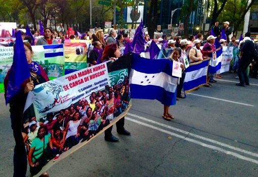 A esta marcha se unieron las mujeres de la Caravana de Madres Centroamericanas, provenientes de Guatemala, Nicaragua, El Salvador y Honduras, que buscan a sus familiares migrantes desaparecidos/as en México.